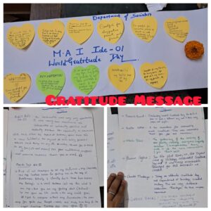 Adding to the occasion, students of the Department of Sociology shared a collective message of thanks: “Today is World Gratitude Day, and we are privileged to extend our heartfelt appreciation to every individual who contributes their efforts and labor for our University. We thank our Head of the Department Dr. Virender Singh and our dedicated professors for inspiring minds and shaping futures through their support and guidance. We also thank the persons behind the curtains—our administrators and housekeeping staff—for creating an environment where we can grow and develop well. And lastly, to our fellow students, whose curiosity, collaboration, and spirit make this academic journey meaningful. All these parts together become one body and spirit not only of our department but also of our university, making it a ‘functional system.’ Today, we simply pause to say THANK YOU to express our gratitude.”